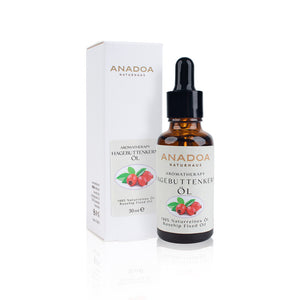 Hagebuttenöl ist ein wahrer Feuchtigkeitsheld, der die Haut mit seinem Reichtum an Linol- und Linolensäure intensiv mit Nährstoffen versorgt.